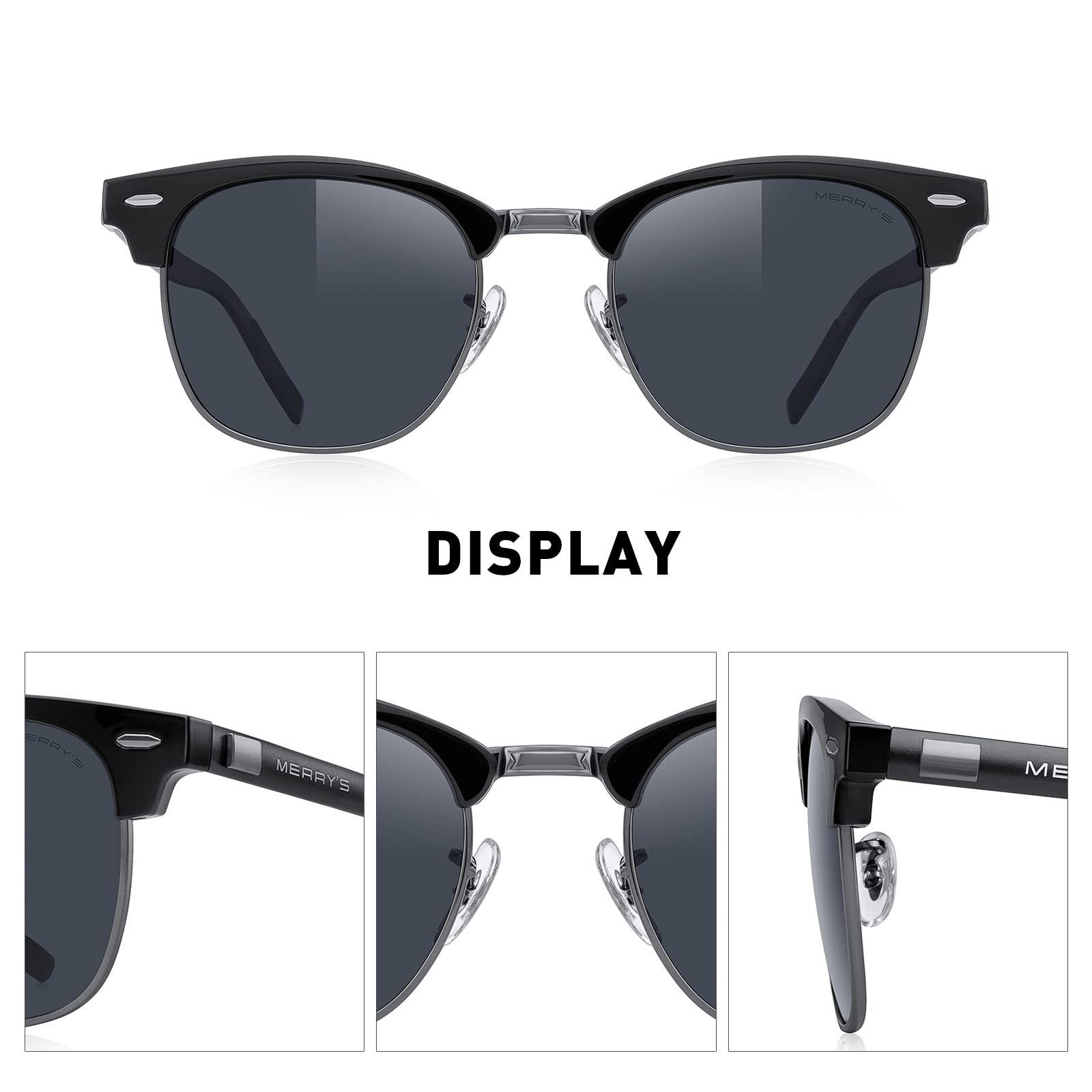 MERRY'S Unisex Polarized Aluminum Sunglasses for Men Women Semi Rimless Retro Brand Driving Sun Glasses